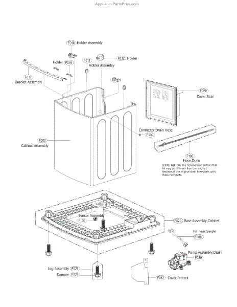 The Drain Pump Assembly is an OEM replacement part for LG washing machines. As an important part of the washer drain system, it drives the pumping action removing water from the tub at the end of each cycle. Causes of drain pump failure include normal wear from continuous operation over time, foreign debris potentially clogging the impeller cavity, or mineral/scale buildup inhibiting pump function. Symptoms of a faulty drain pump can include: