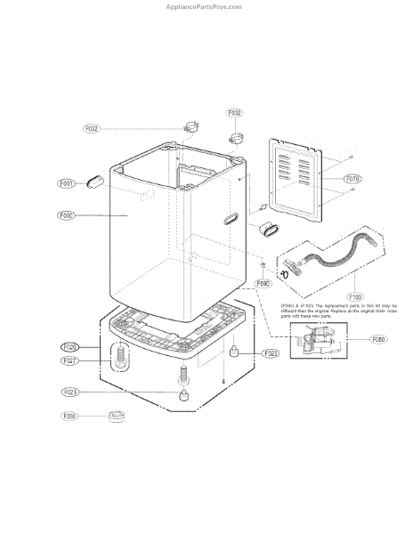The Drain Pump Assembly is an OEM replacement part for LG washing machines. As an important part of the washer drain system, it drives the pumping action removing water from the tub at the end of each cycle. Causes of drain pump failure include normal wear from continuous operation over time, foreign debris potentially clogging the impeller cavity, or mineral/scale buildup inhibiting pump function. Symptoms of a faulty drain pump can include: