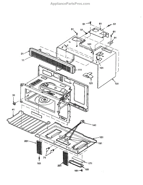 Parts for Amana MVH350E-P1323219M: Outercase / Rack / Lights And Filters Parts