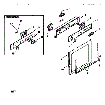 Black fascia frame for dishwasher control panel. Replaces cracked, broken, or worn frames. Installs on front panel without mask. Restores clean look.