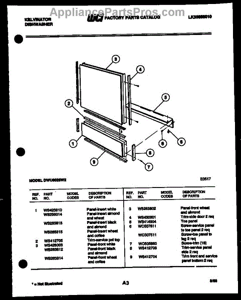 Parts for Frigidaire DWU6025W2: 03 - Outer Door Parts