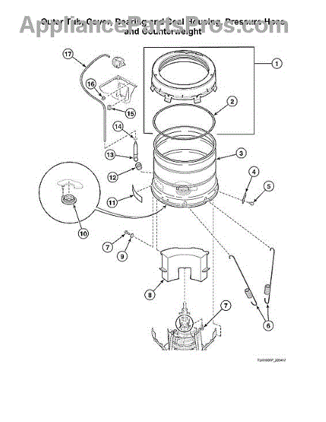 This tall-lip seal fits the outer tub to help keep wash water inside the tub and protect internal components from leaks. It replaces a worn or damaged outer tub seal to restore a watertight tub interface. What it does: