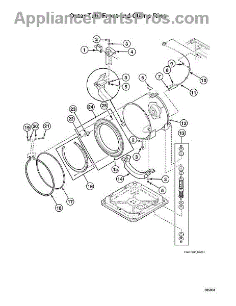 Parts for Speed Queen AFNE9RSP115TW13: Outer Tub / Front & Clamp Ring Parts