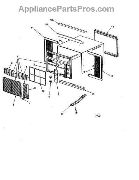 Parts for Amana RC10091A1D / PRC10091A1D: Outercase / Curtains / Front Assembly Parts