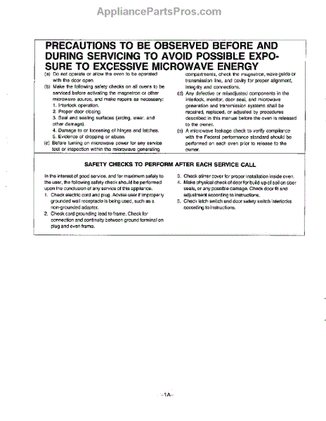 Oven (0.4 Cu Ft Procedure For Microwave Leakage
