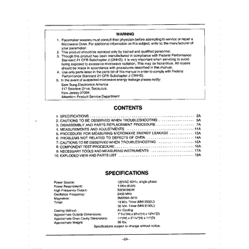 Oven (0.4 Cu Ft Warning / Contents / Specifications
