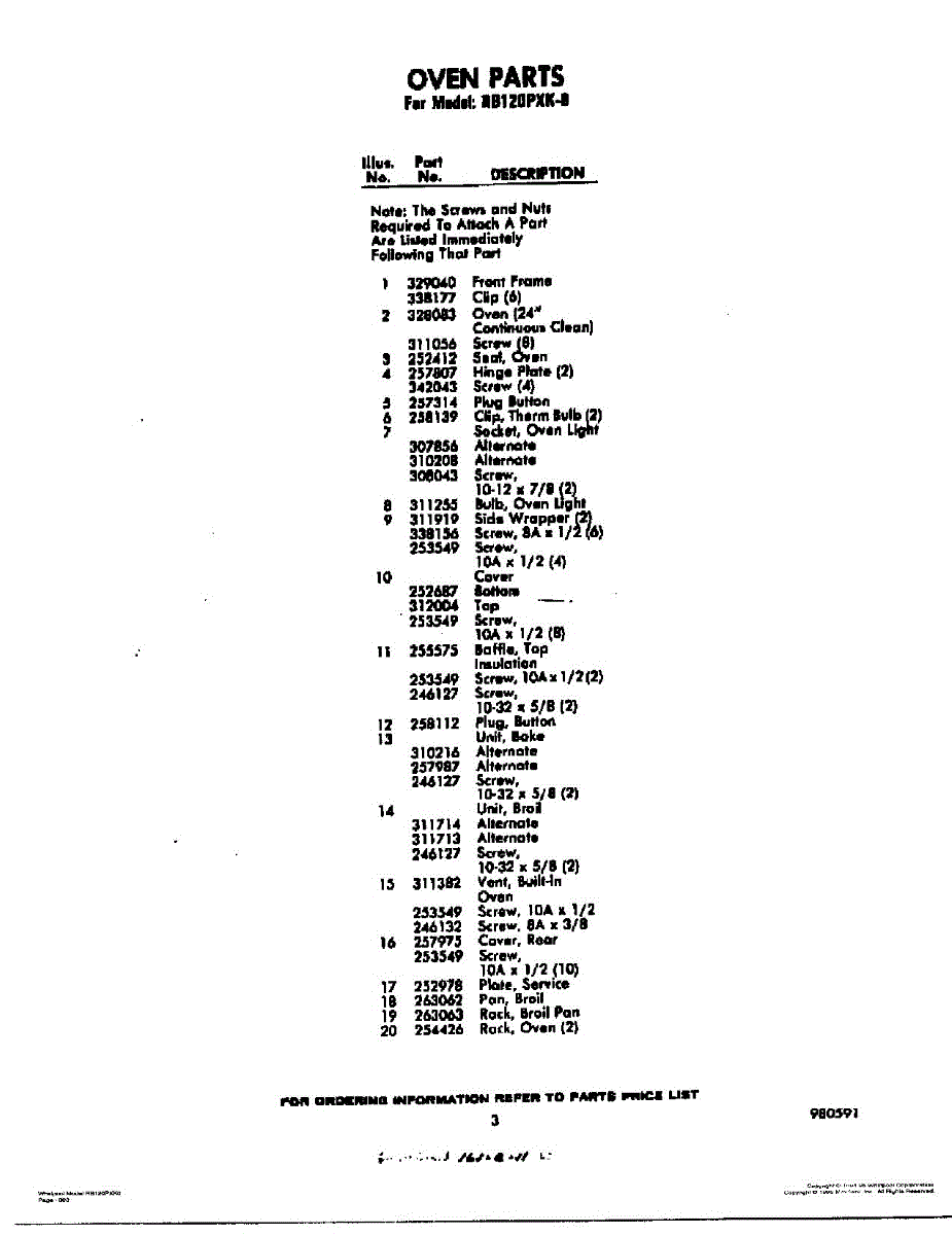Parts for Whirlpool RB120PXK0: 03 - Oven Parts