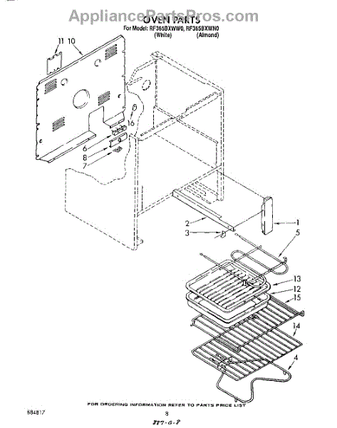 Parts for Whirlpool RF365BXWW0: 08 - Oven Parts