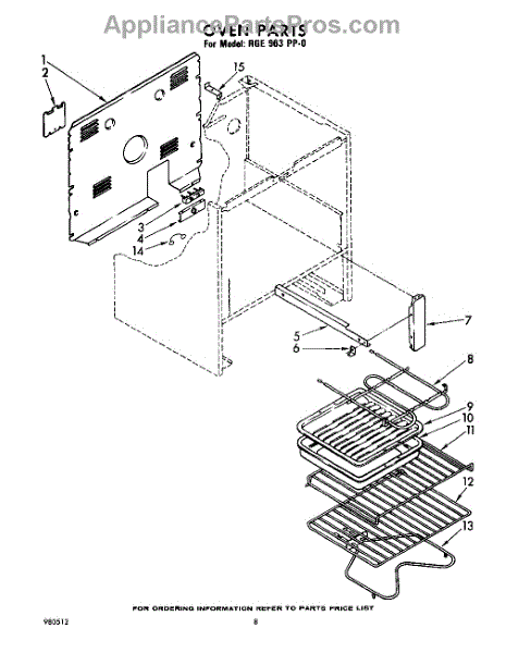 Parts for Whirlpool RGE963PP0: 08 - Oven Parts