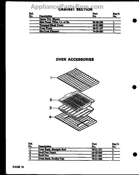 Parts for Modern Maid QDU-838A: Oven Accessories (Qdu-838) (Qdu-858) (Qdu-878) Parts