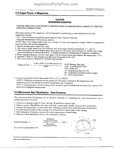 Parts for Samsung MW5580W/XAA: Oven Alignment And Adjustments Page 3 Parts