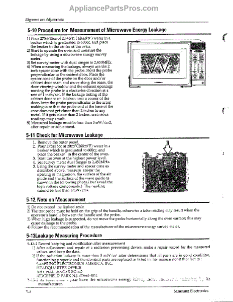 Parts for Samsung MW6371G/XAA: Oven Alignment And Adjustments Page 4 Parts