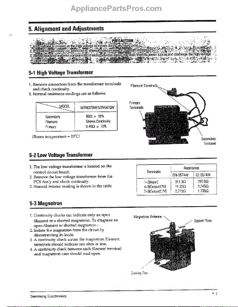 Parts for Samsung MW6470W/XAA: Oven Alignment And Adjustments Parts
