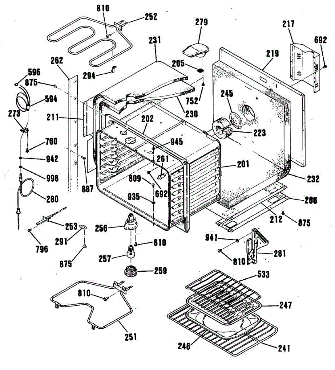 Left side hinge assembly for oven doors. Replaces broken, cracked, or worn hinges that prevent proper door opening and closing. Direct fit component.