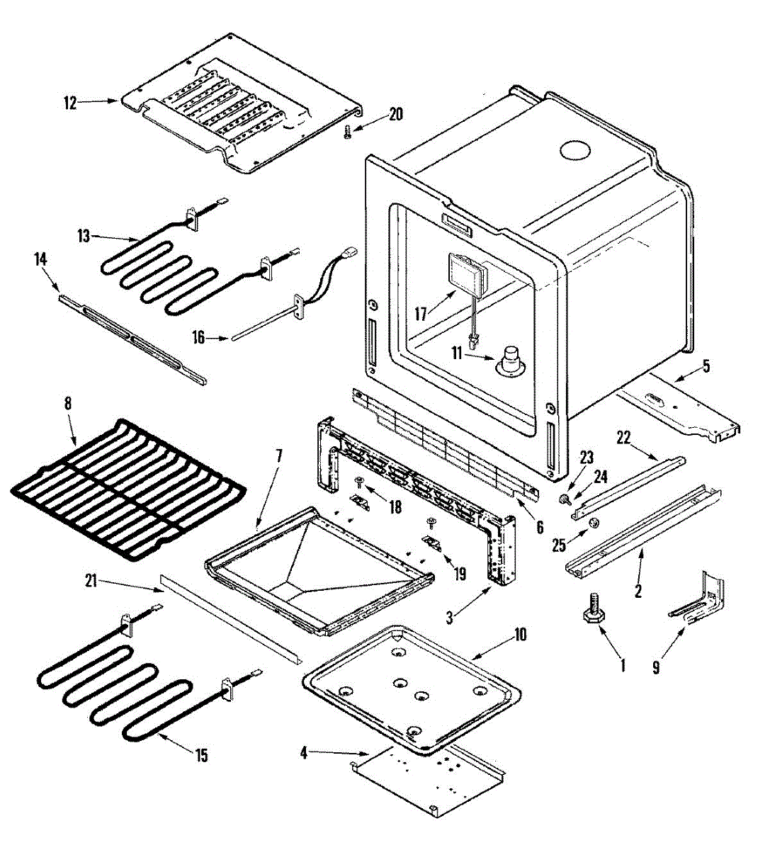 The broil element is the oven's upper heating element that delivers direct radiant heat for broiling and finishing foods. Replacing a failed element restores consistent top-side browning and proper broil performance.