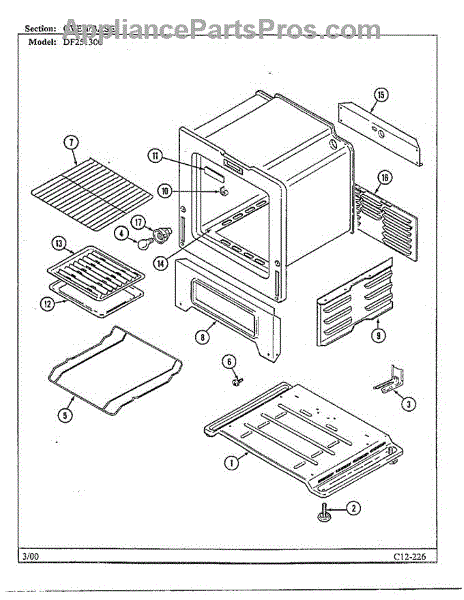 Parts for Magic Chef DF251300: Oven / Base Parts