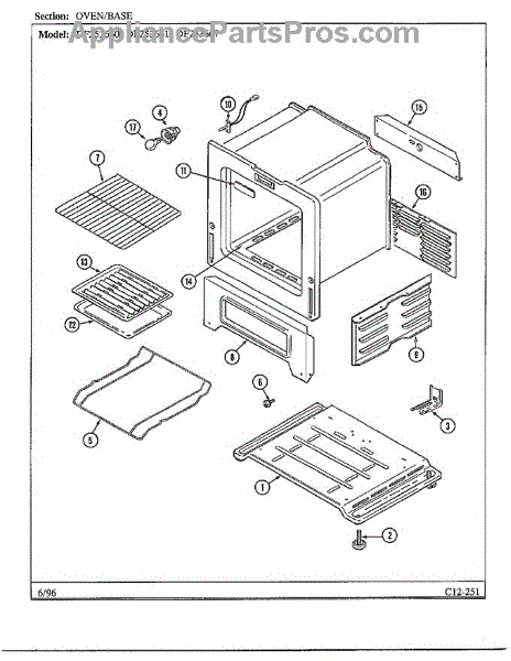 Parts for Magic Chef DF253660: Oven / Base Parts