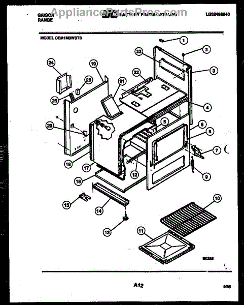 Parts for Frigidaire CGA1M3WSTB: 05 - Oven Body Parts