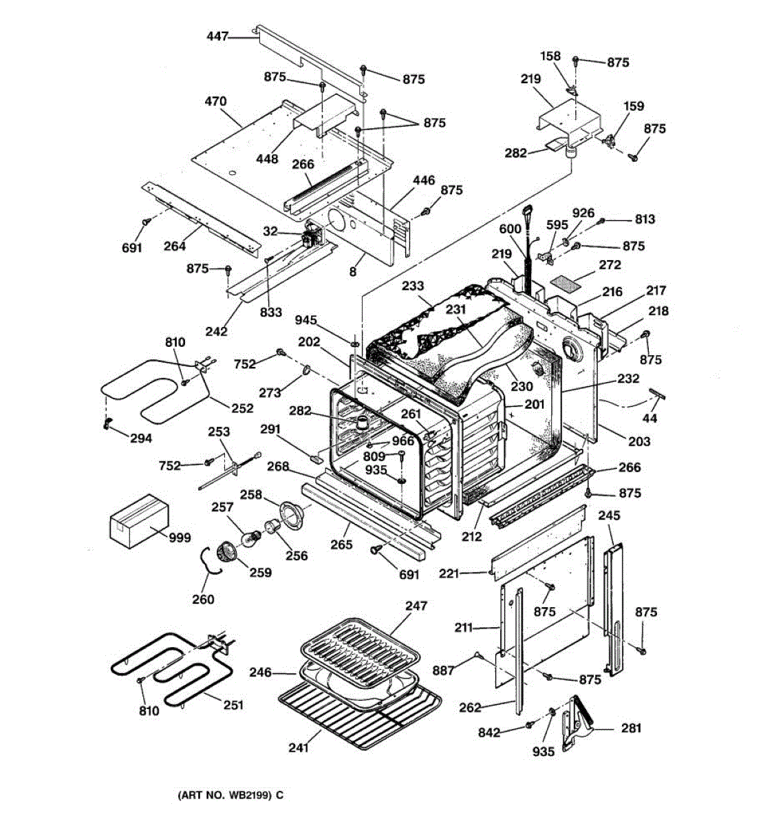 Rear chassis panel for ovens. Supports internal components and protects wiring. Replace if your panel is cracked, corroded, damaged, or missing.