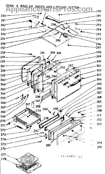 Parts for Kenmore 103.7416861 (1037416861, 103 7416861): Oven And Broiler Doors And Locking System Parts