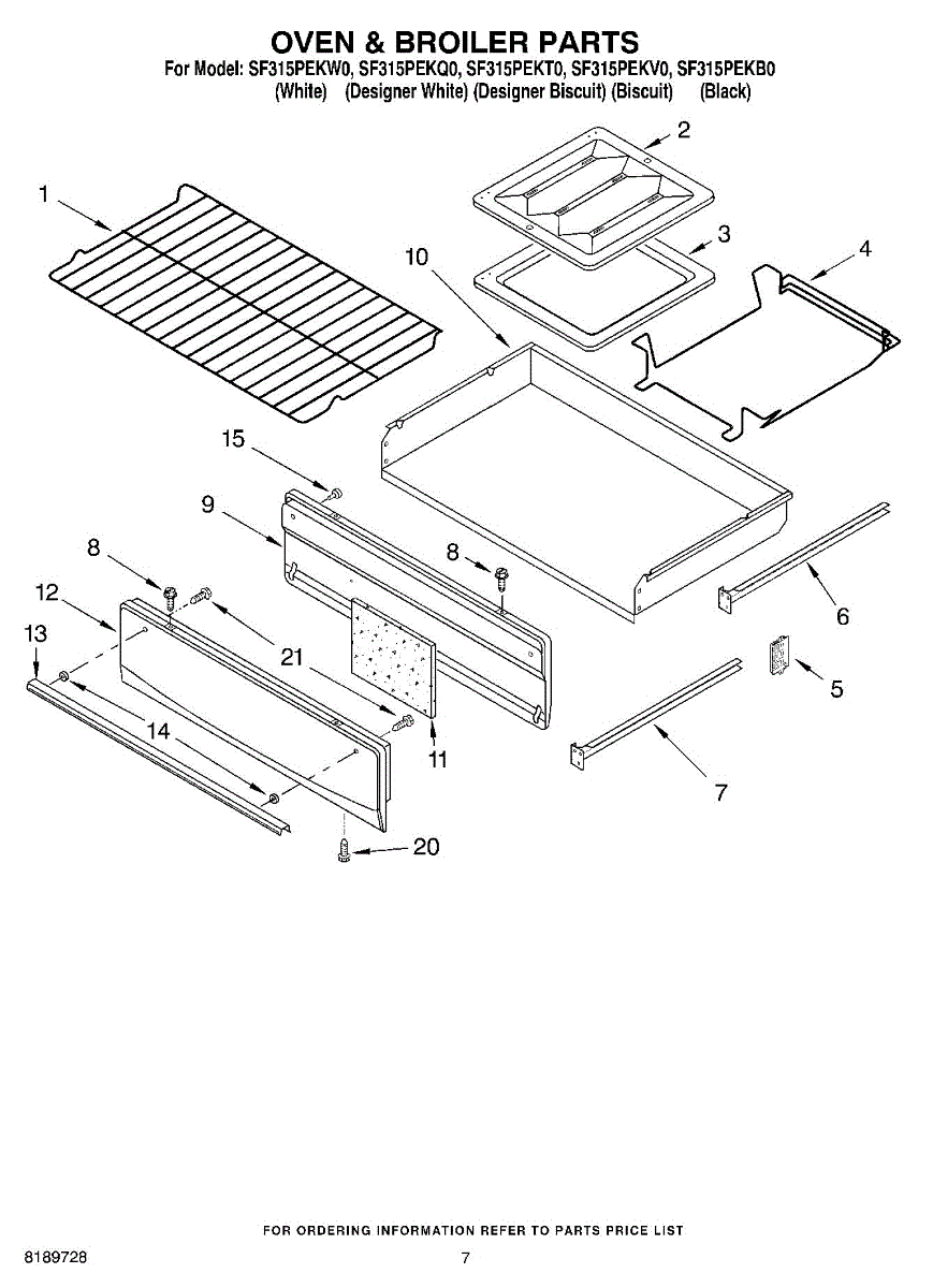Parts for Whirlpool SF315PEKV0: 05 - Oven And Broiler Parts