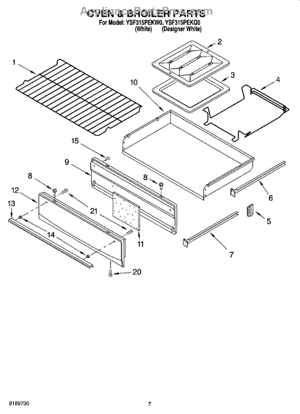 Parts for Whirlpool YSF315PEKW0: 05 - Oven & Broiler Parts