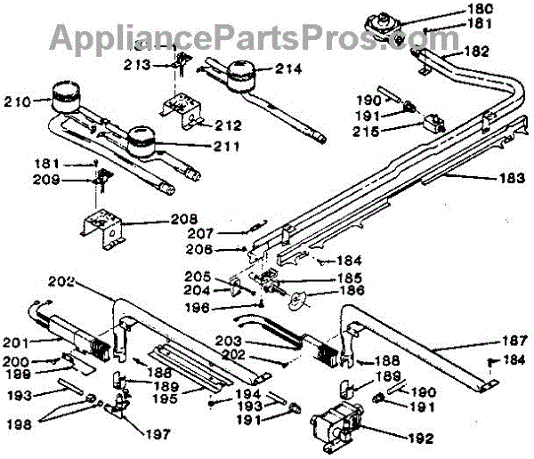 Parts for Kenmore 119.7498890 (1197498890, 119 7498890): Oven Burner And Top Burners Section Parts