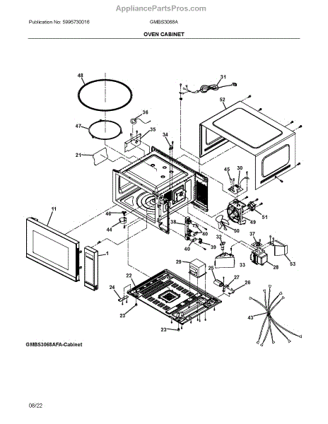 This bracket secures a component or panel within the appliance to keep it aligned and stable during operation. Replacing a cracked or missing bracket restores proper support and helps prevent vibration, rattling, or shifting.