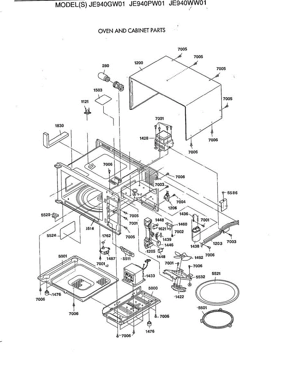 Parts for Ge JE940PW01: 01 - Oven And Cabinet Parts