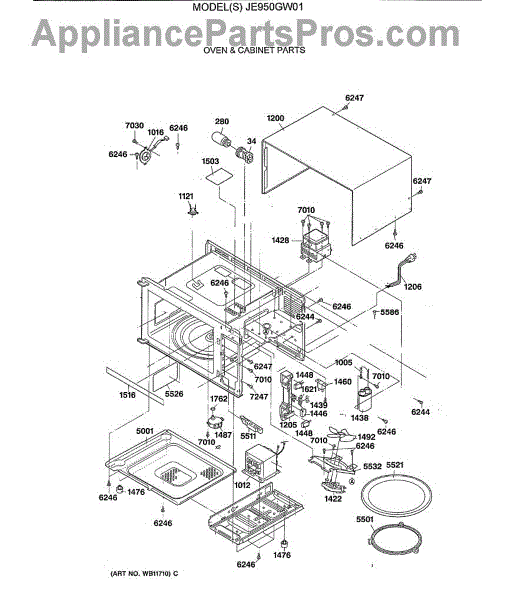 Parts for Ge JE950GW01: 01 - Oven & Cabinet Parts