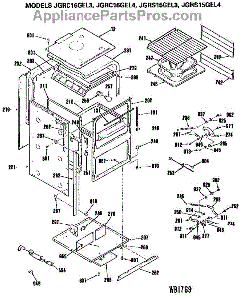 Parts for Ge JGRS15GEL3: Oven Cabinet Parts