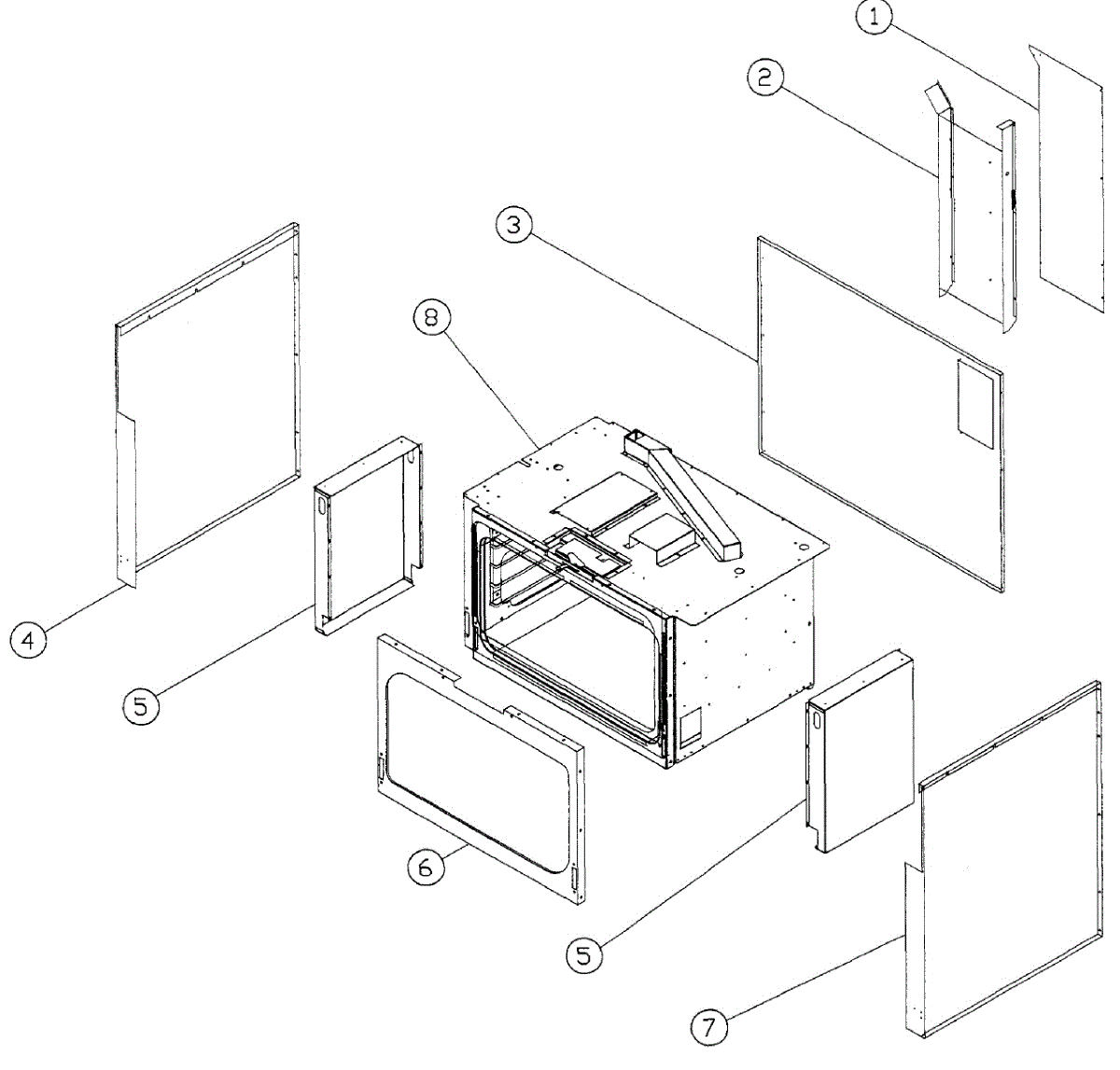 Parts for Dacor ERDE36LPH: Oven Case Parts