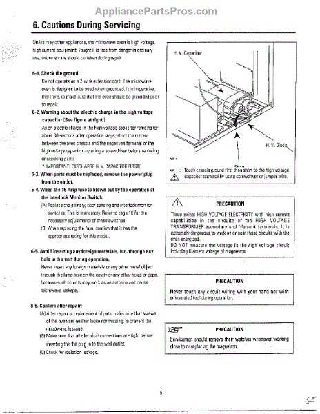Parts for Samsung MU3050W/XAA: Oven Cautions During Servicing Parts