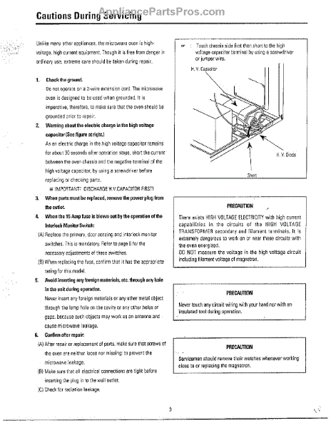 Parts for Samsung MW5350W/XAA: Oven Cautions Parts