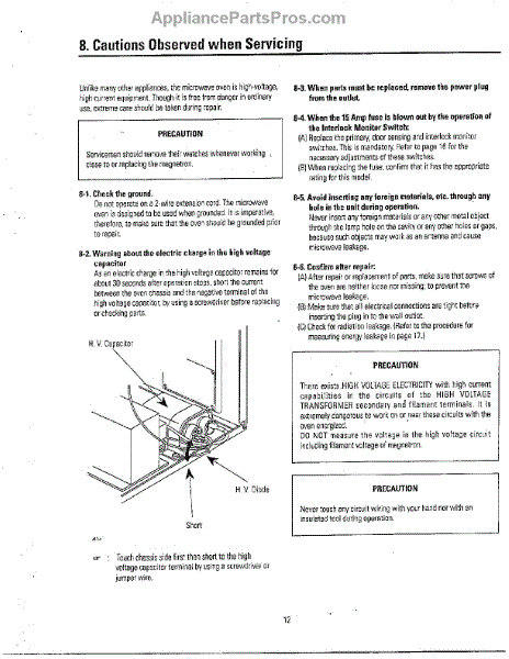 Parts for Samsung MW6330T/XAA: Oven Cautions When Serving Parts