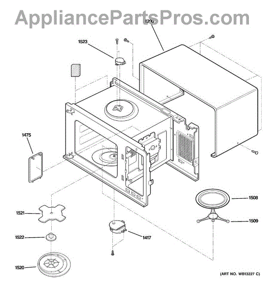 The Rotating Ring Assembly is an OEM replacement part for GE built-in microwave models. Located inside the cavity, it supports the glass turntable tray responsible for rotationally cooking food. Each prong of the assembly measures about 4-1/2 inches from the center.