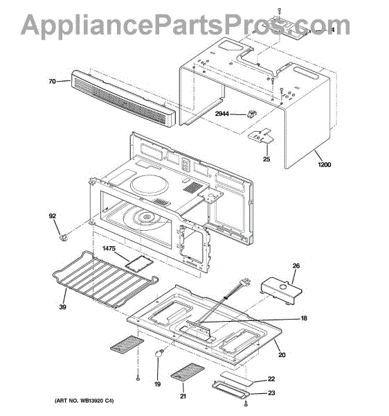 This resin canopy is the interior ceiling cover inside the microwave cavity. It shields the stirrer area from grease and splatter to help maintain even heating and protect internal components for safer, more reliable cooking. What it does: