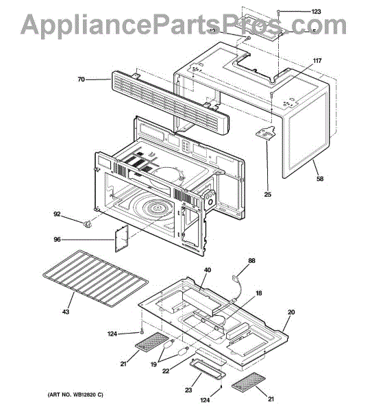 The Grille Vent is an OEM part for GE microwaves. It is designed to fit above the microwave door, facilitating the ventilation of steam and heat generated during cooking. This grille helps to maintain optimal operating temperatures and prevents overheating by ensuring proper airflow across the microwave's internal components.