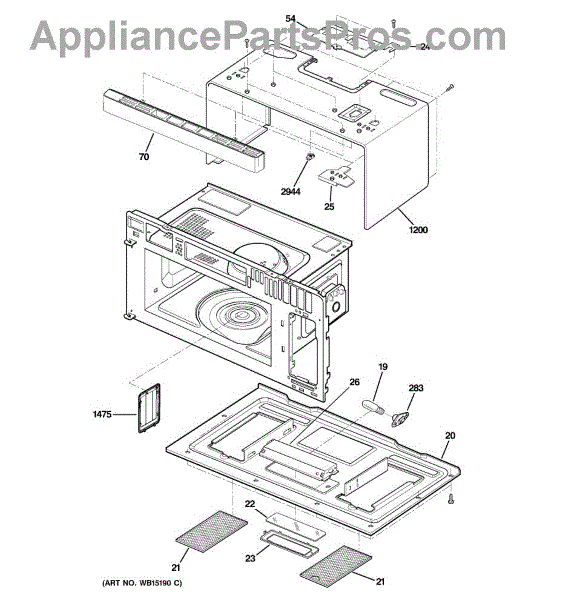 This molded resin cover is a protective plastic shield used inside the microwave. It helps protect internal components and ducting from splatter and debris and restores a secure, finished fit when the original cover is cracked or missing. What it does: