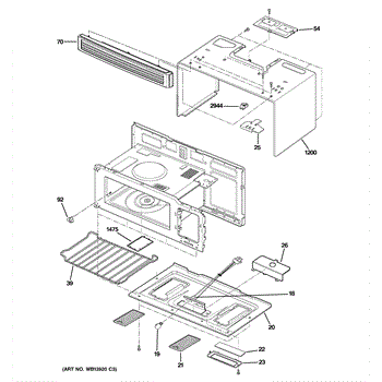 Resin canopy cover for microwave cavity ceiling. Shields stirrer and waveguide opening from grease and splatter. Replace if cracked, broken, or missing.
