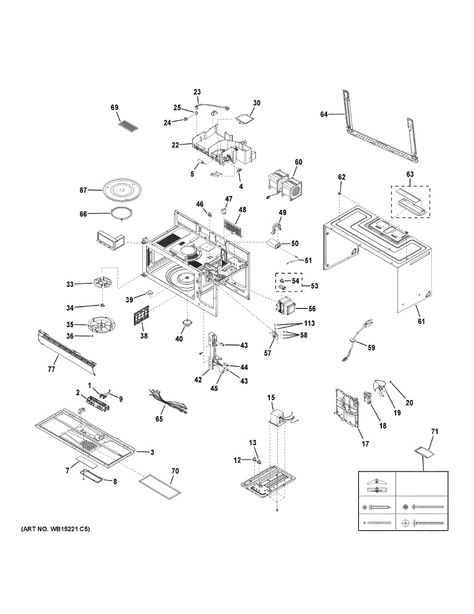 Secures microwave components and mounting brackets. Replace this hardware assembly if screws are stripped, bolts are missing, or fasteners are damaged.