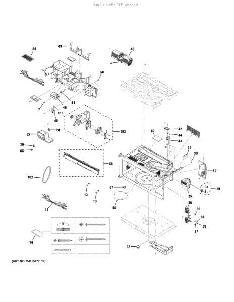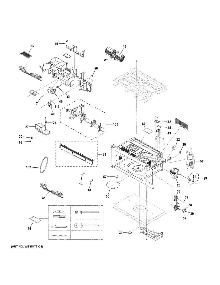 Secures microwave components and mounting brackets. Replace this hardware assembly if screws are stripped, bolts are missing, or fasteners are damaged.