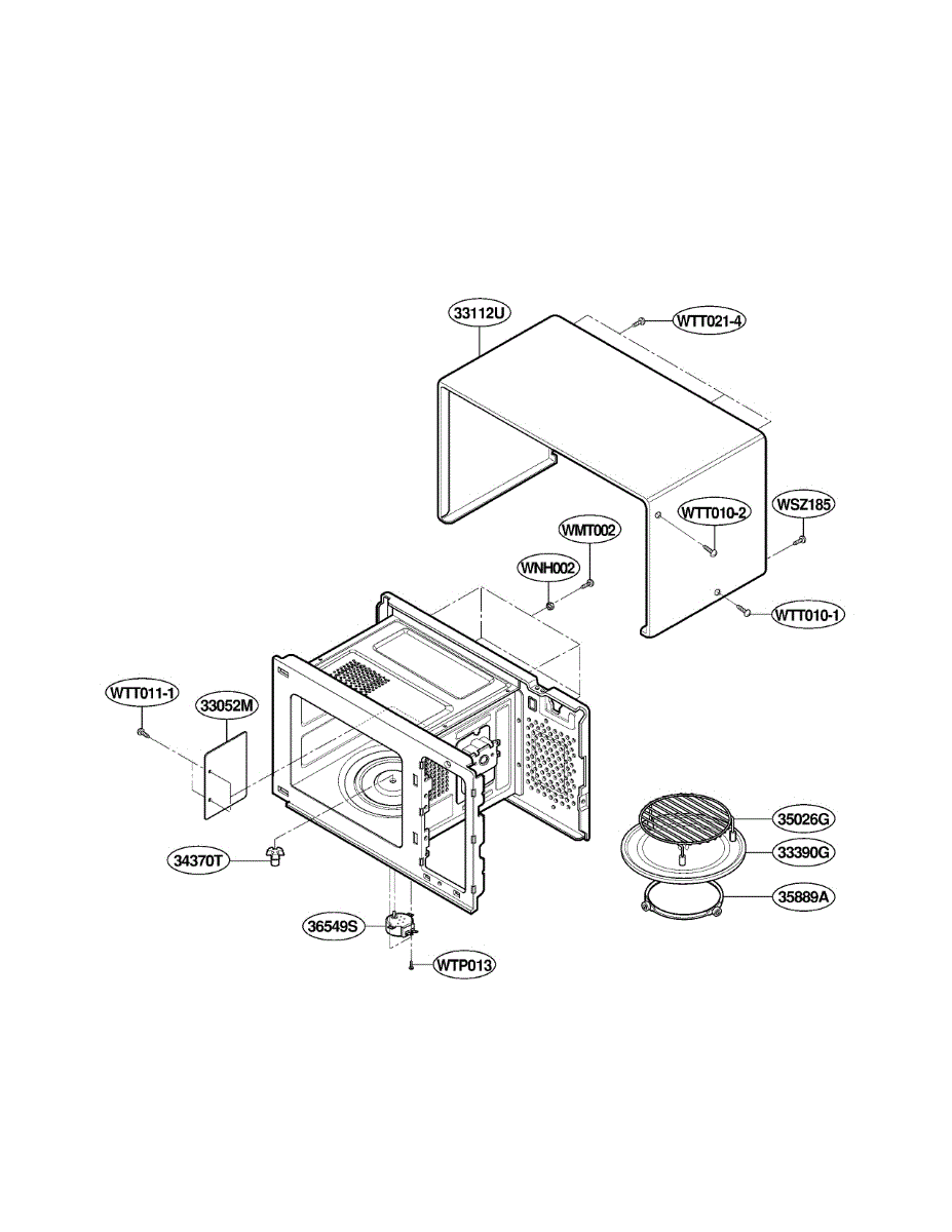 Self-tapping screw for securing microwave panels and components. Replace if lost, stripped, or damaged during service. Essential for proper assembly.