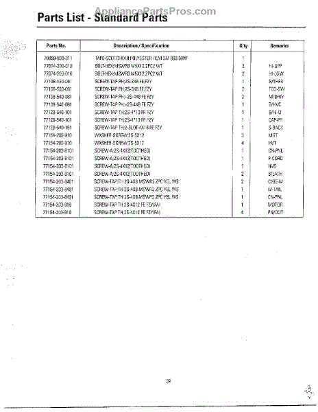 Parts for Samsung MW3580T/XAA: Oven Cavity And Standard Parts
