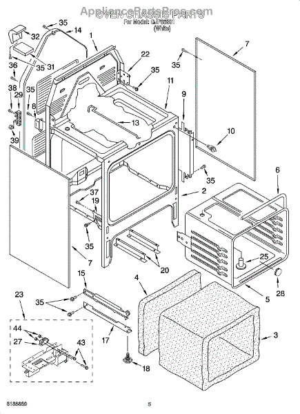 This terminal block is the insulated connection point where the appliance's incoming power ties into the internal wiring. Replacing a heat-damaged or loose block restores a safe, reliable electrical path and helps prevent arcing and intermittent power loss.