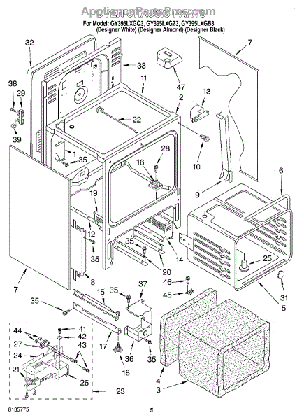 This terminal block is the insulated connection point where the appliance's incoming power ties into the internal wiring. Replacing a heat-damaged or loose block restores a safe, reliable electrical path and helps prevent arcing and intermittent power loss.