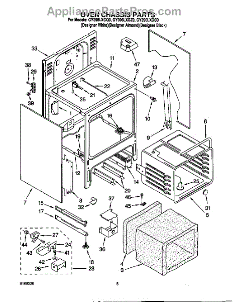 This terminal block is the insulated connection point where the appliance's incoming power ties into the internal wiring. Replacing a heat-damaged or loose block restores a safe, reliable electrical path and helps prevent arcing and intermittent power loss.