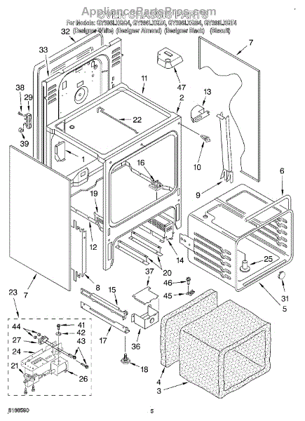 Parts for Whirlpool GY396LXGB4: 04 - Oven Chassis Parts