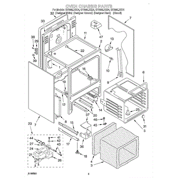 This terminal block is the insulated connection point where the appliance's incoming power ties into the internal wiring. Replacing a heat-damaged or loose block restores a safe, reliable electrical path and helps prevent arcing and intermittent power loss.