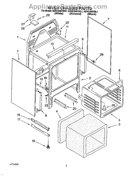 Parts for Kitchenaid KERC500YWH1: 04 - Oven Chassis Parts